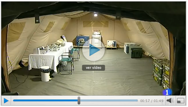 Reportaje sobre las unidades sanitarias d campaña d ET. Preparadas para accidente nuclear Simulacro del Ejército Español contra un ataque con armas químicas